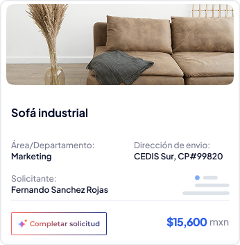 Tus usuarios compran solos, guiados por IA. Crea solicitudes completas sin depender del equipo de compras.